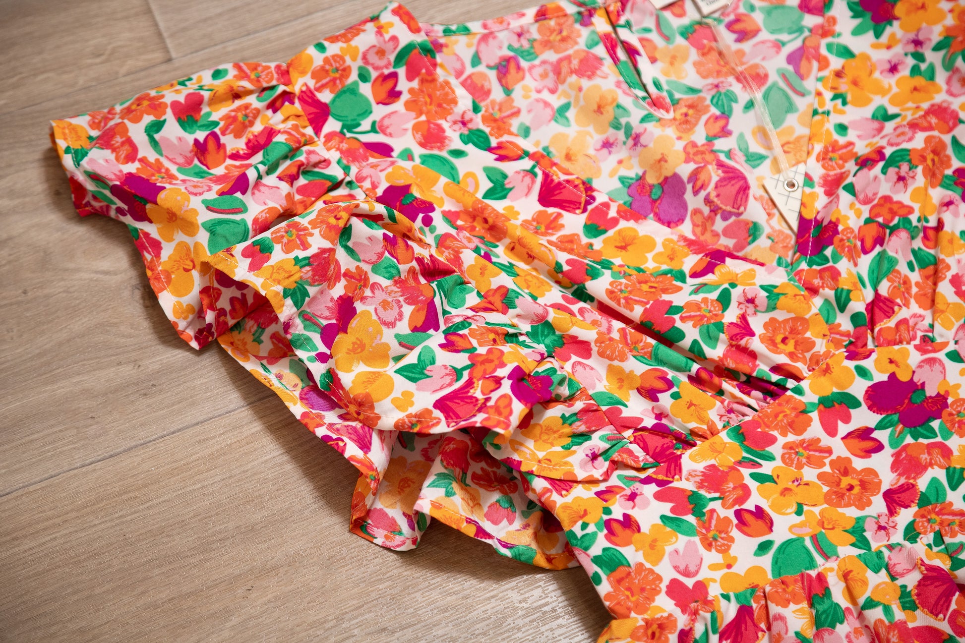 The Bloom With Confidence Dress features a vibrant floral print with the prettiest mix of pinks, oranges, and pops of green that instantly brightens your day. Designed with statement ruffle sleeves and a flattering V-neckline, this piece gives you that effortlessly feminine, feel-good fit.