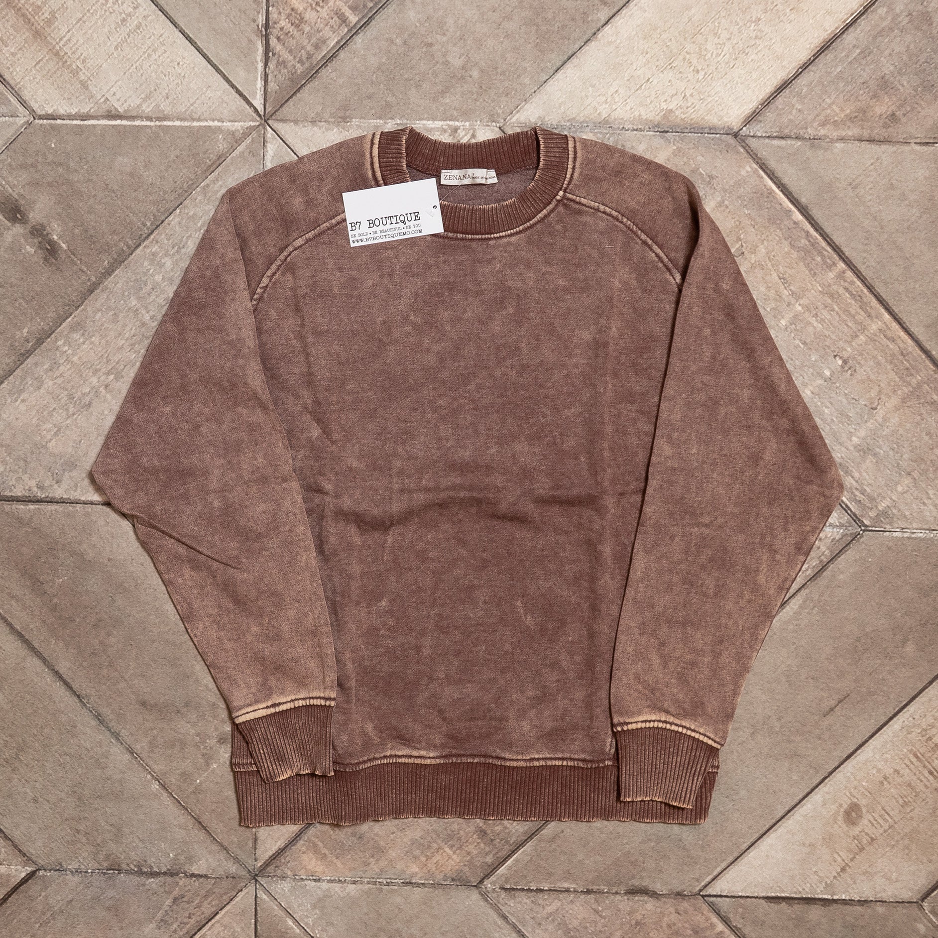 Acid Wash Fleece Sweatshirt with Side Rib – Vintage Vibe Cozy Pullover