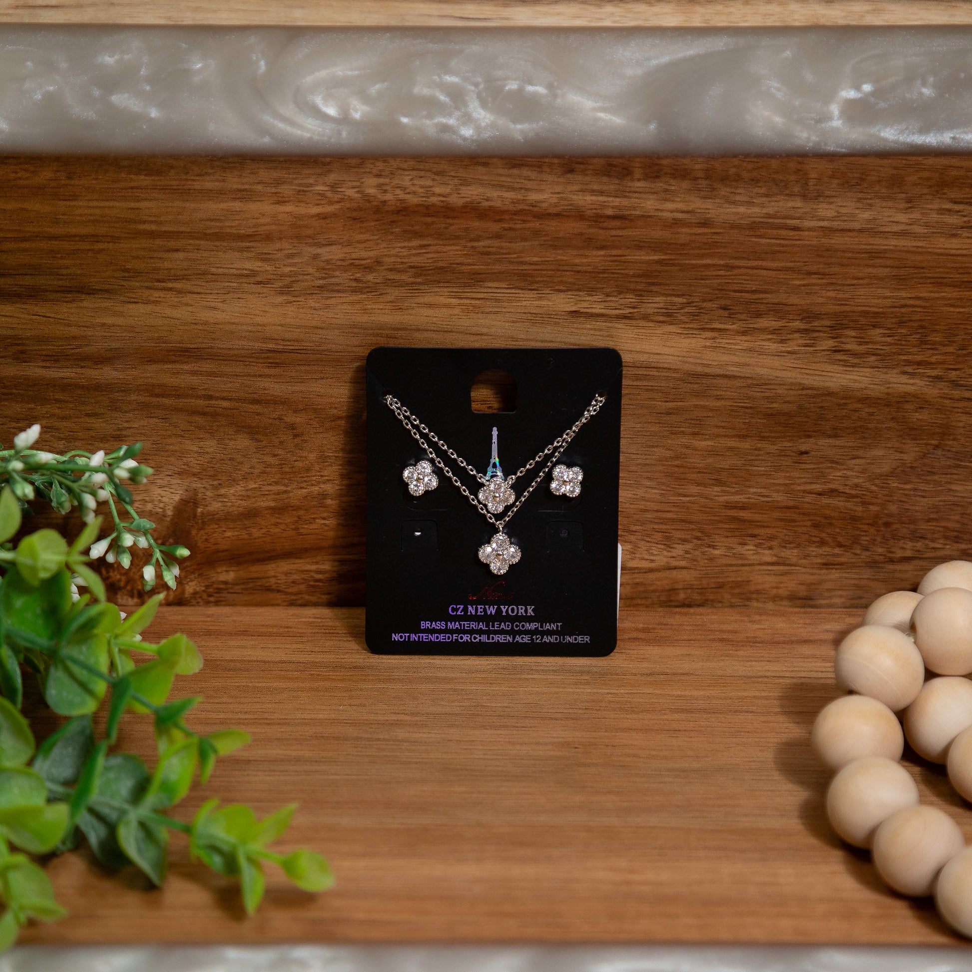 Blooming Brilliance CZ Flower Necklace & Earring Set – Silver