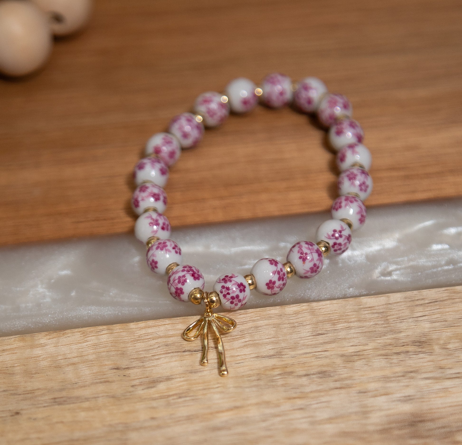 🎀 Chic, dainty, and full of charm! These Bow Charm Beaded Bracelets are the sweetest way to add a touch of elegance to your everyday style. Featuring hand-painted floral porcelain beads in classic pink or blue, each bracelet is accented with a delicate bow charm in your choice of gold or silver for the perfect polished finish.