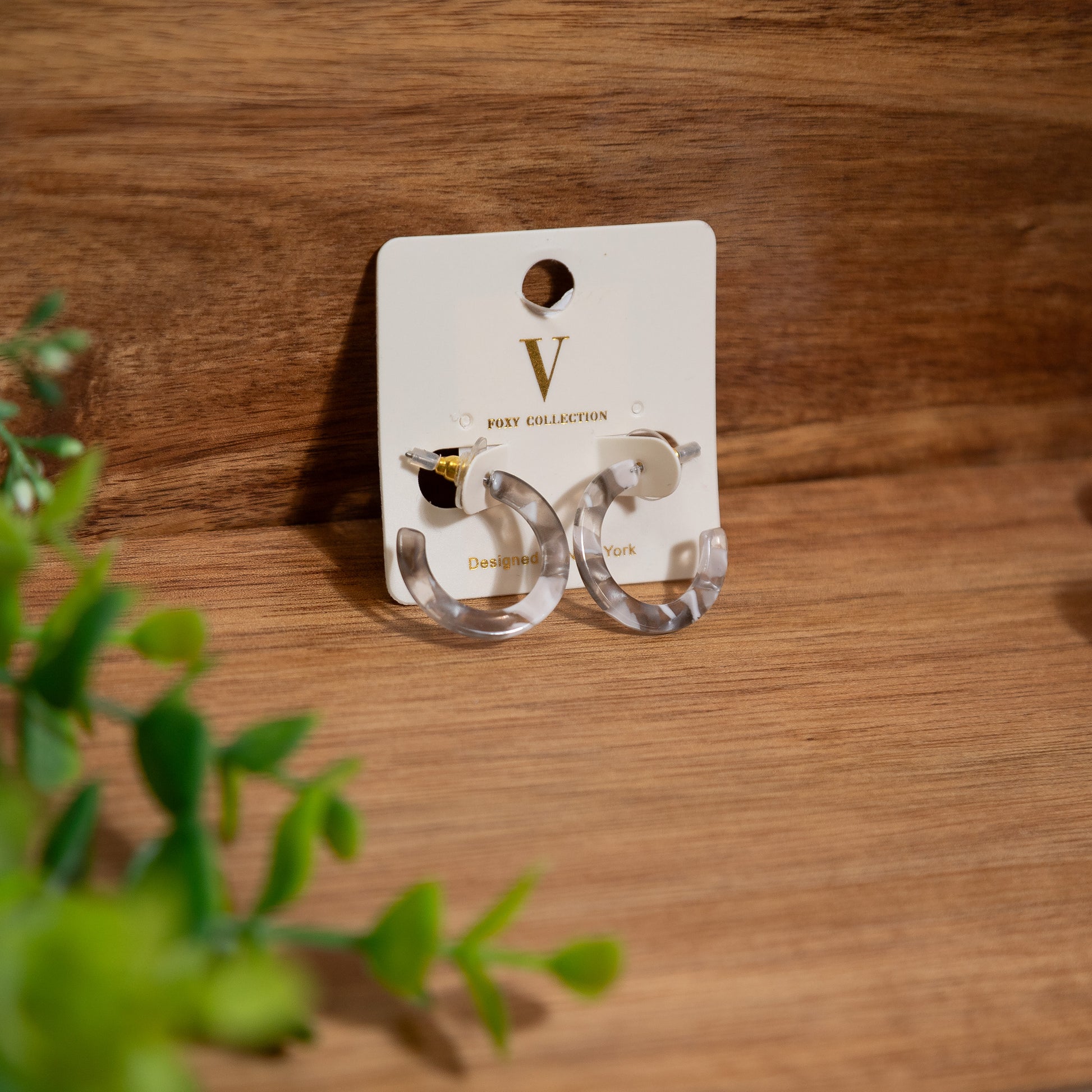 Sleek, simple, and effortlessly chic — our Clear Marbled Acrylic Mini Hoop Earrings are the ultimate everyday accessory. With a subtle swirl of smoky marbling in a lightweight acrylic finish, these hoops give you the perfect pop without overpowering your look.