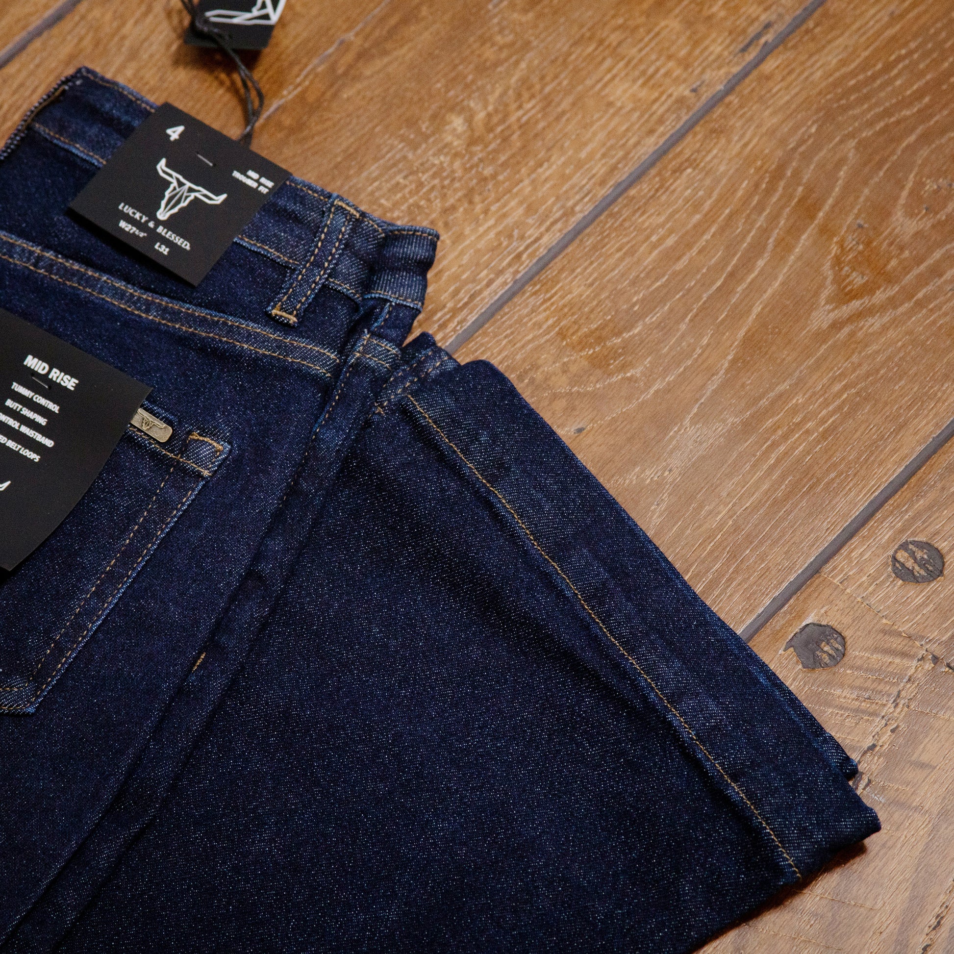 Lucky & Blessed Trouser Jeans – Dark Wash, Mid Rise, 31” Inseam