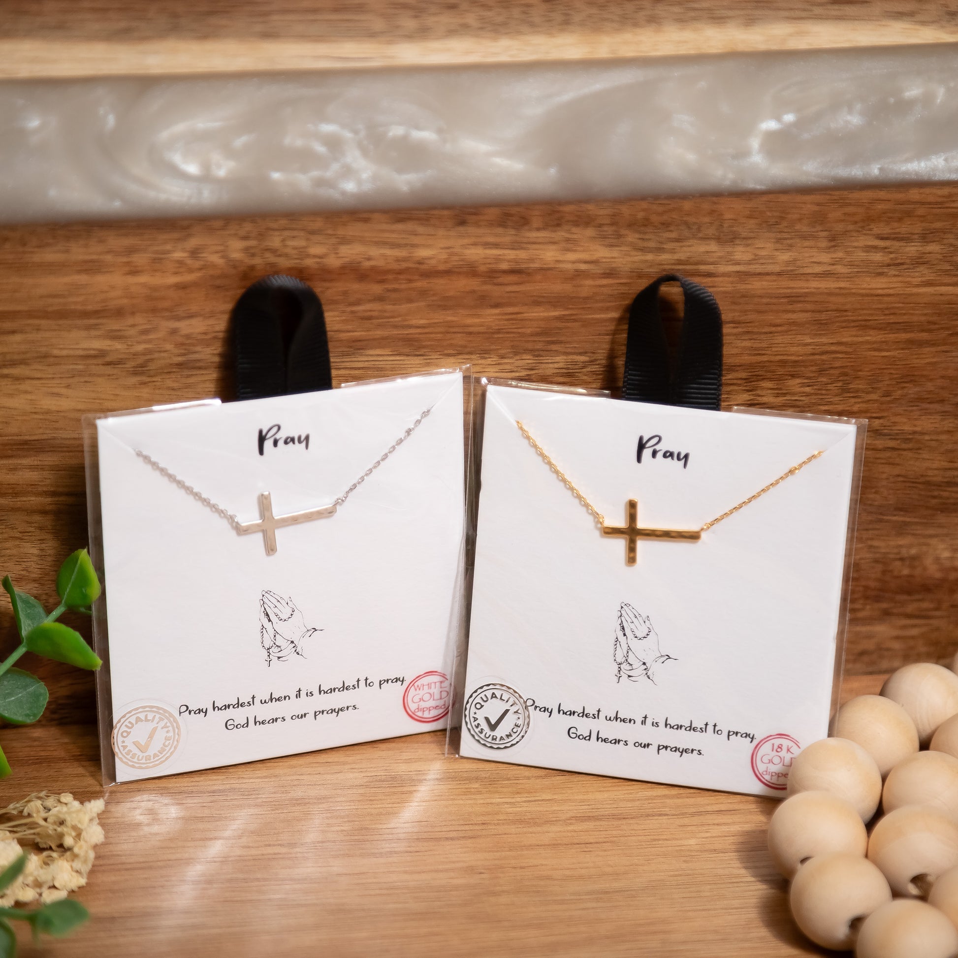 Faith in Prayer Sideways Cross Necklace – Gold or White Gold Dipped