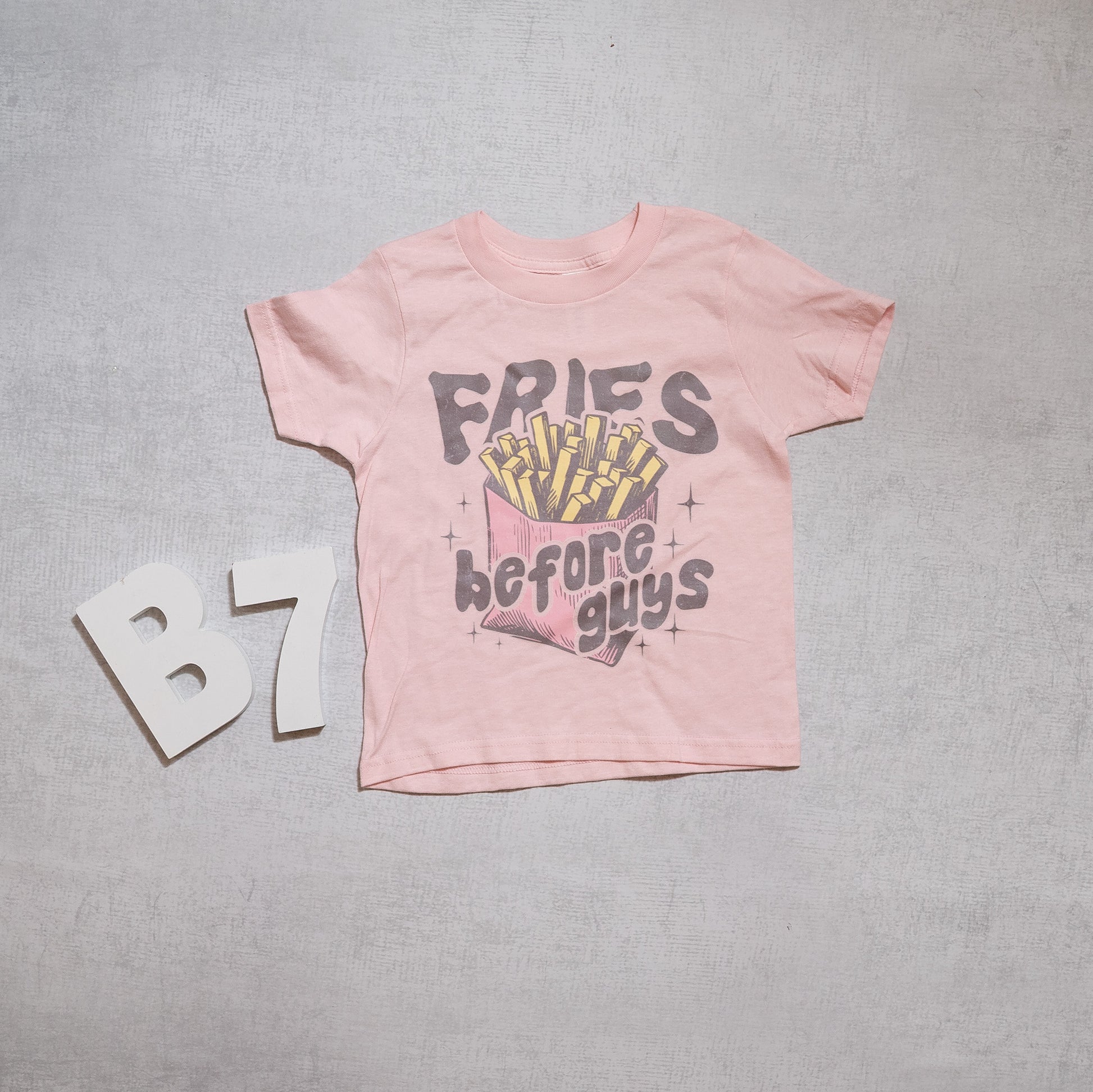 Fries Before Guys Kids Graphic Tee – Pink French Fry Shirt for Girls