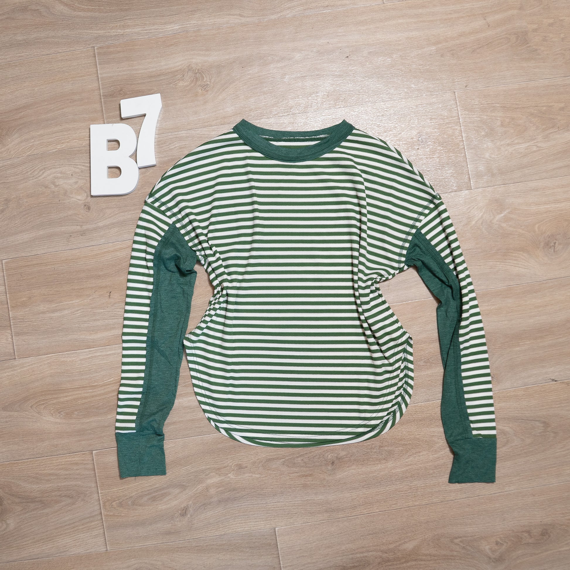 Green Striped Raglan Long Sleeve Top – Casual Everyday Knit Shirt