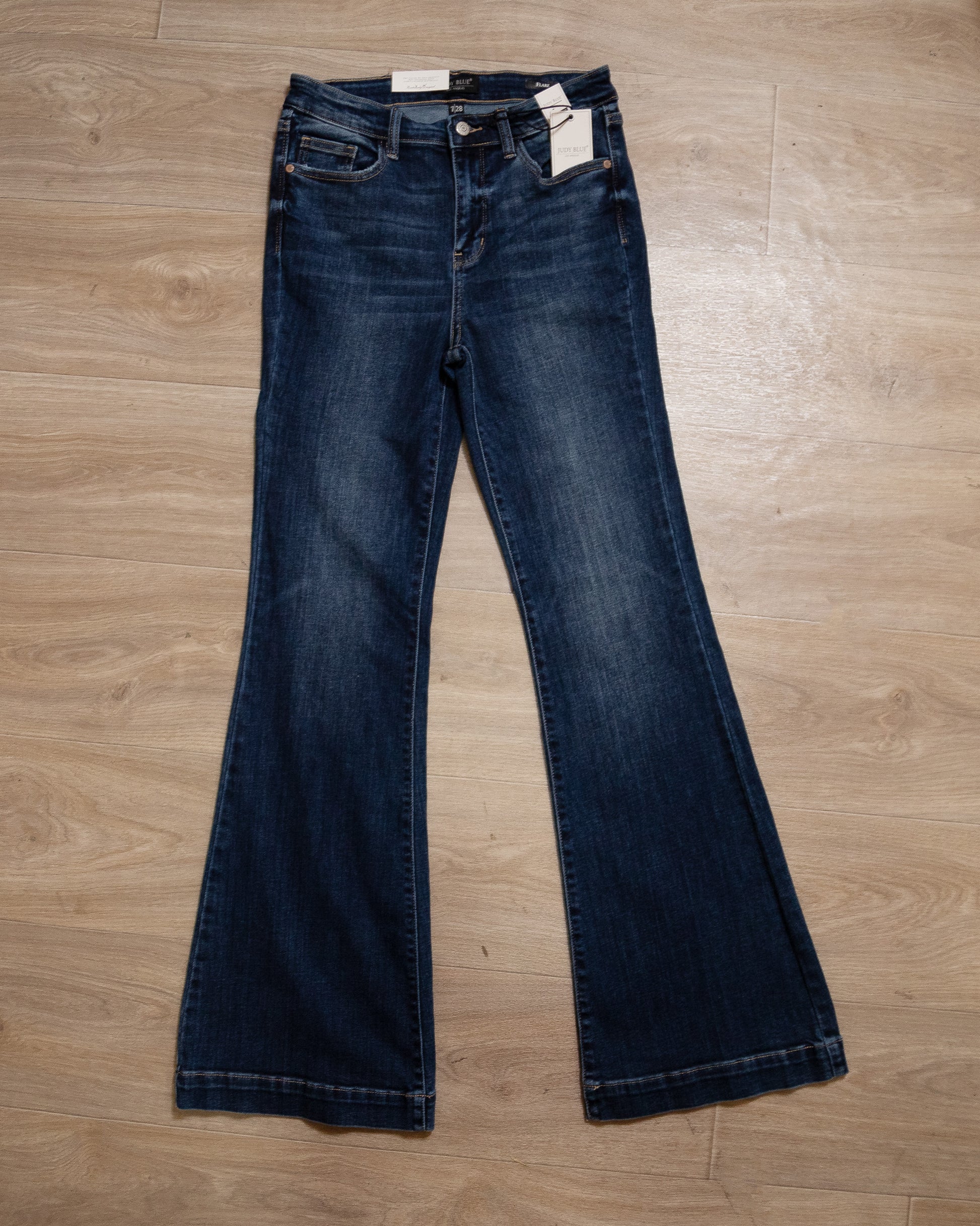 Judy Blue High Waist Trouser Flare Jeans – Curve-Hugging with Retro ’70s Flare 🌟