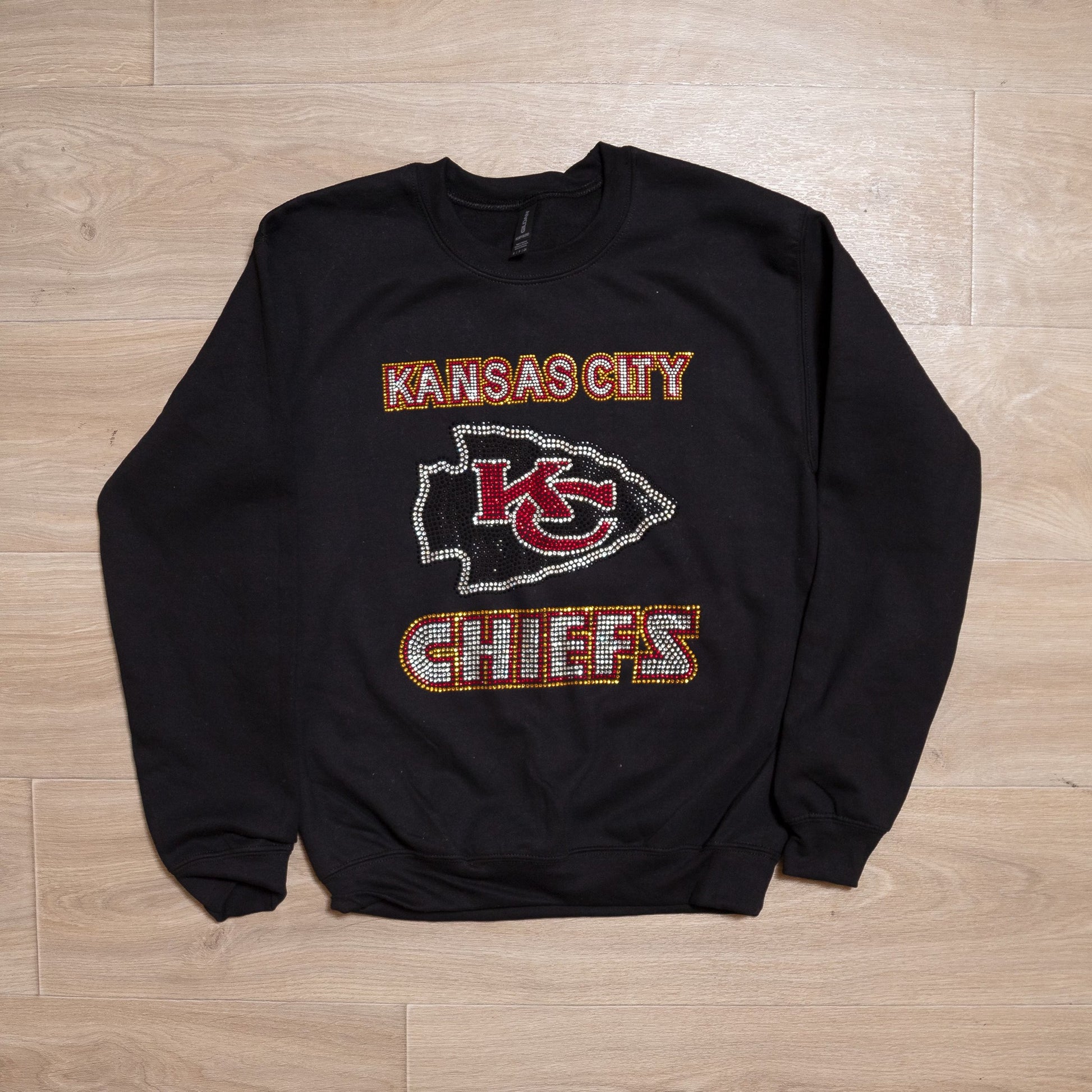 Kansas City Chiefs Rhinestone Black Crewneck Sweatshirt – Sparkling Game Day Spirit