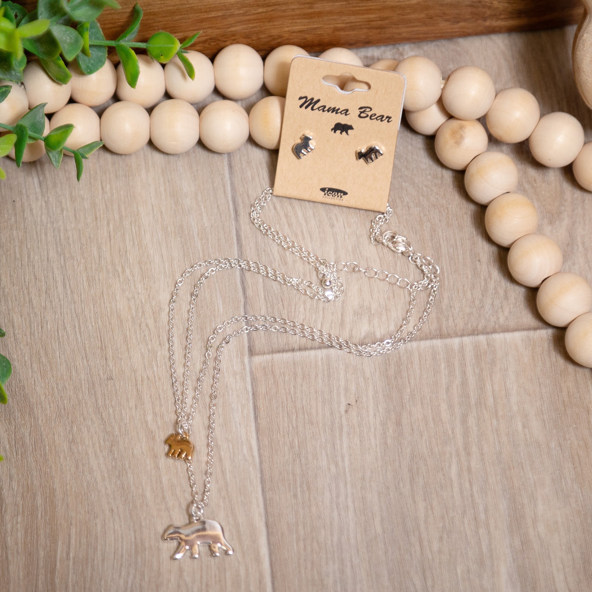 Our Mama Bear Love Necklace & Earring Set is the sweetest reminder of your strength, love, and that protective mama heart. This dainty silver-tone set features a layered necklace with two adorable bears — mama + baby — and matching bear stud earrings to complete your look.