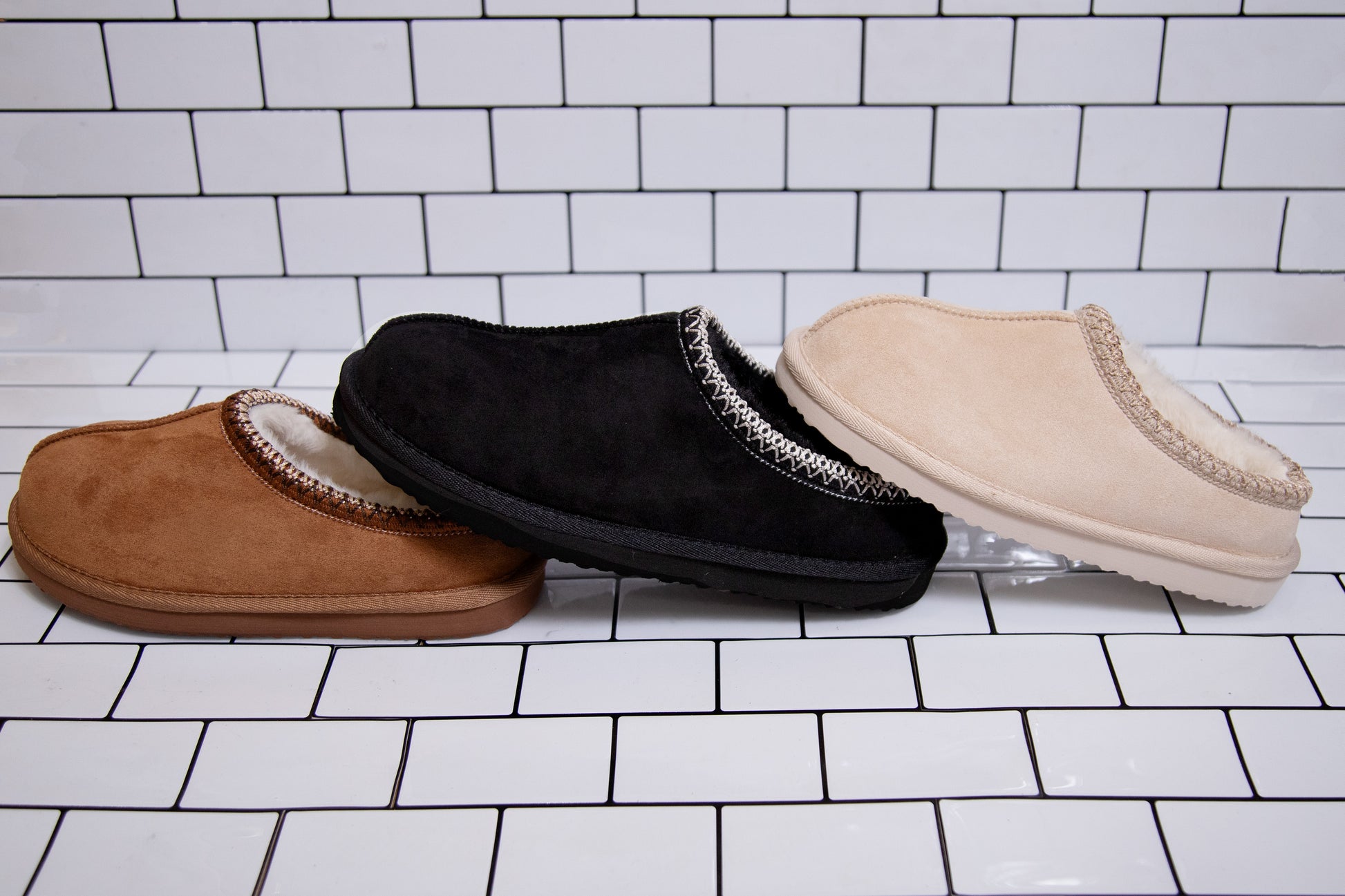These fleece-lined slip-on clogs deliver all the comfort of your favorite house slippers with the durability you need for running errands, coffee runs, or just lounging in style. Featuring a soft suede-like exterior, plush interior lining, and the signature embroidered trim around the collar, these clogs bring the perfect blend of cozy vibes and on-trend design.