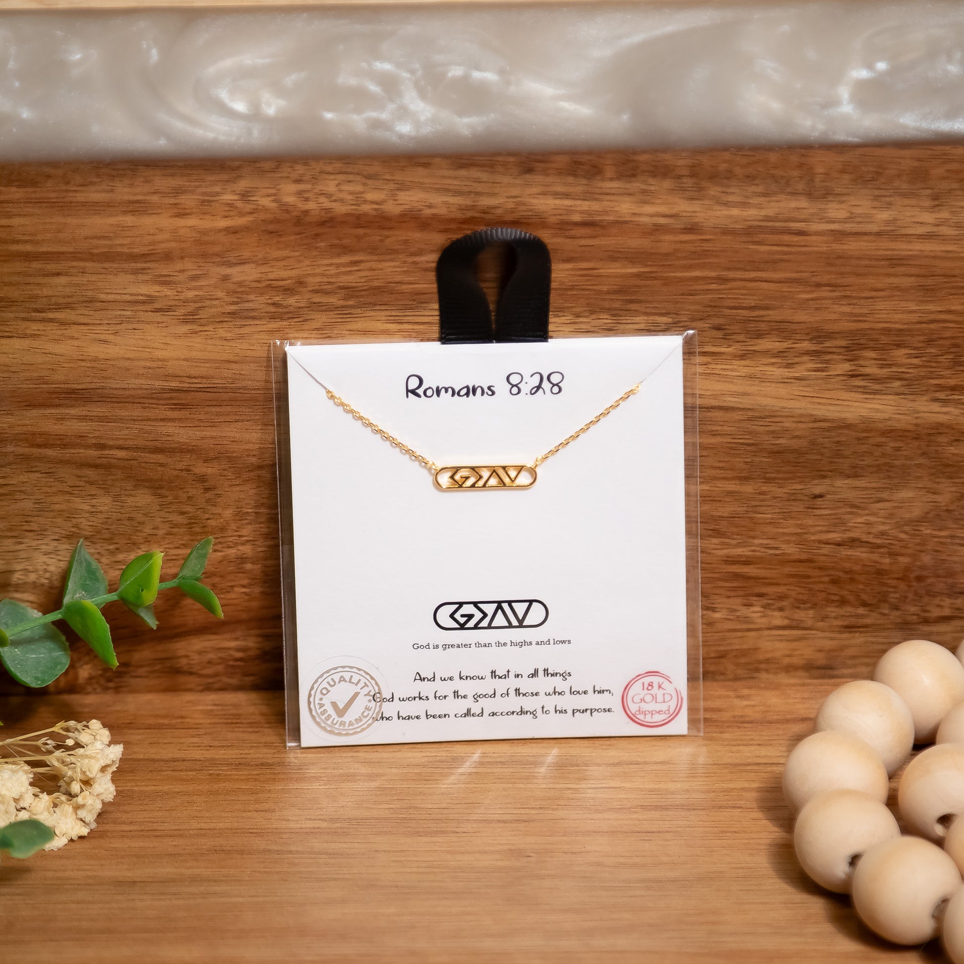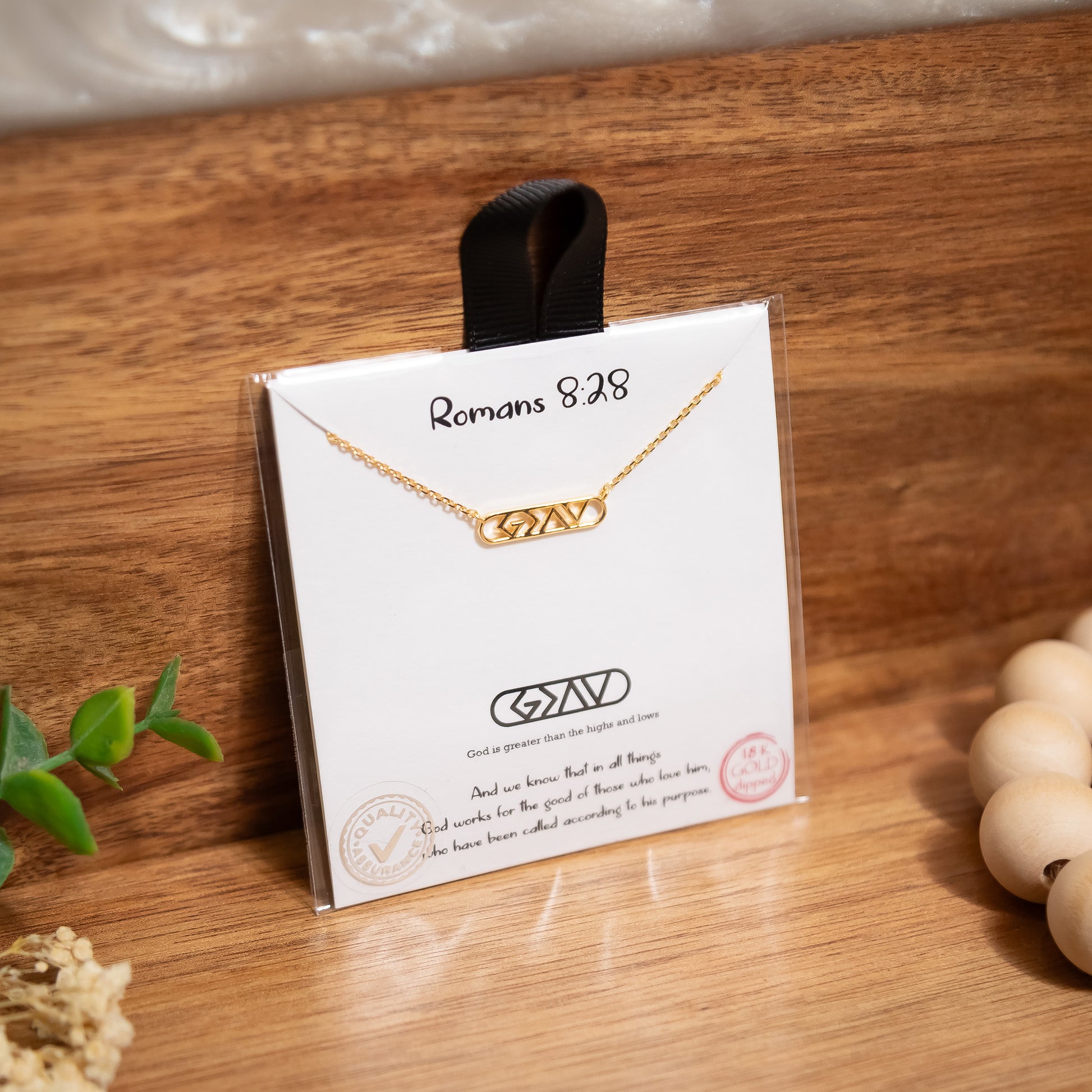 ✨ Faith you can wear every day. This Romans 8:28 inspired necklace features the powerful God is Greater than the Highs and Lows symbol beautifully engraved on a sleek bar pendant. Available in your choice of radiant 18K gold-dipped or polished silver-tone finish, it’s a meaningful reminder of God’s promise to work all things together for good.
