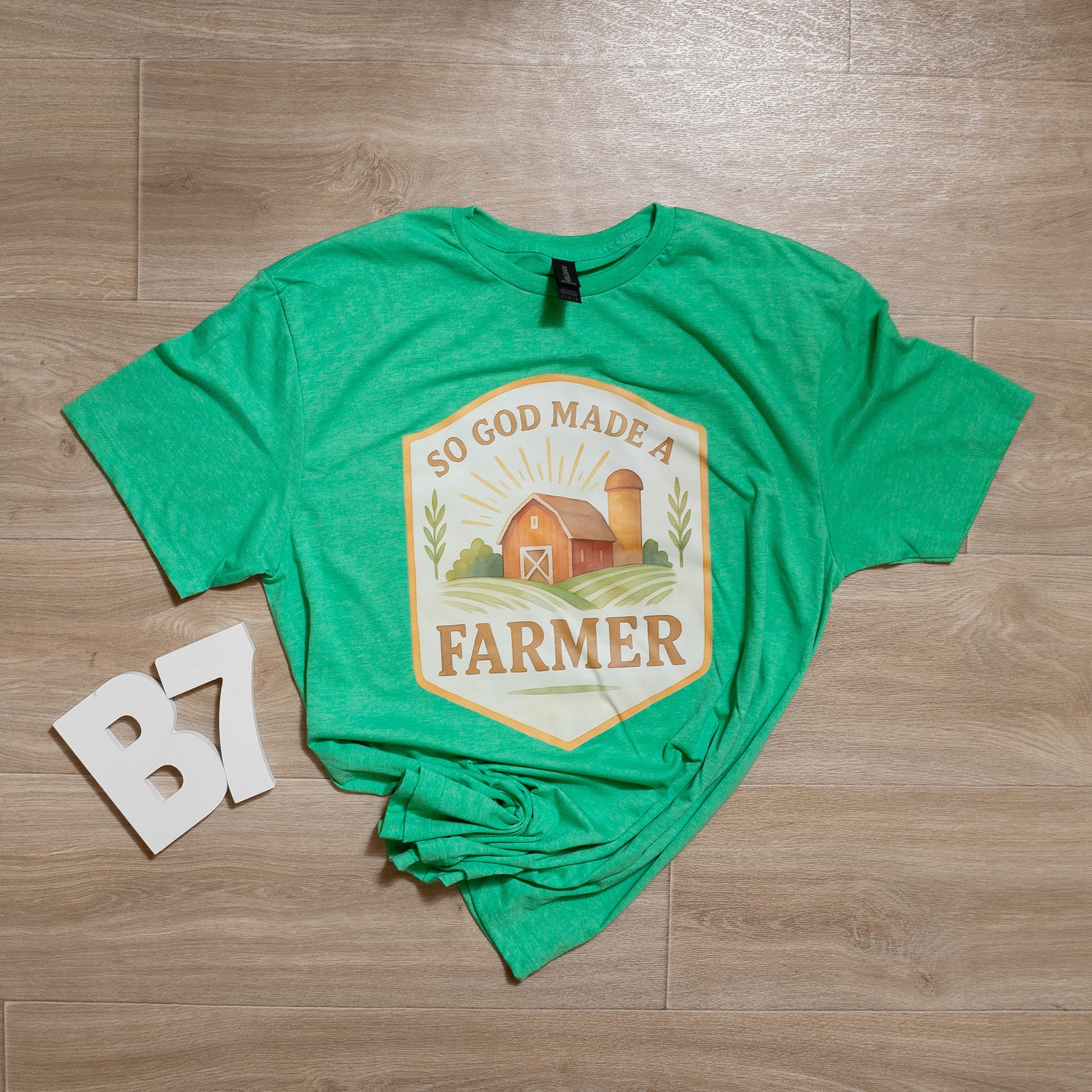 So God Made a Farmer Graphic Tee – Christian Faith Farming Shirt