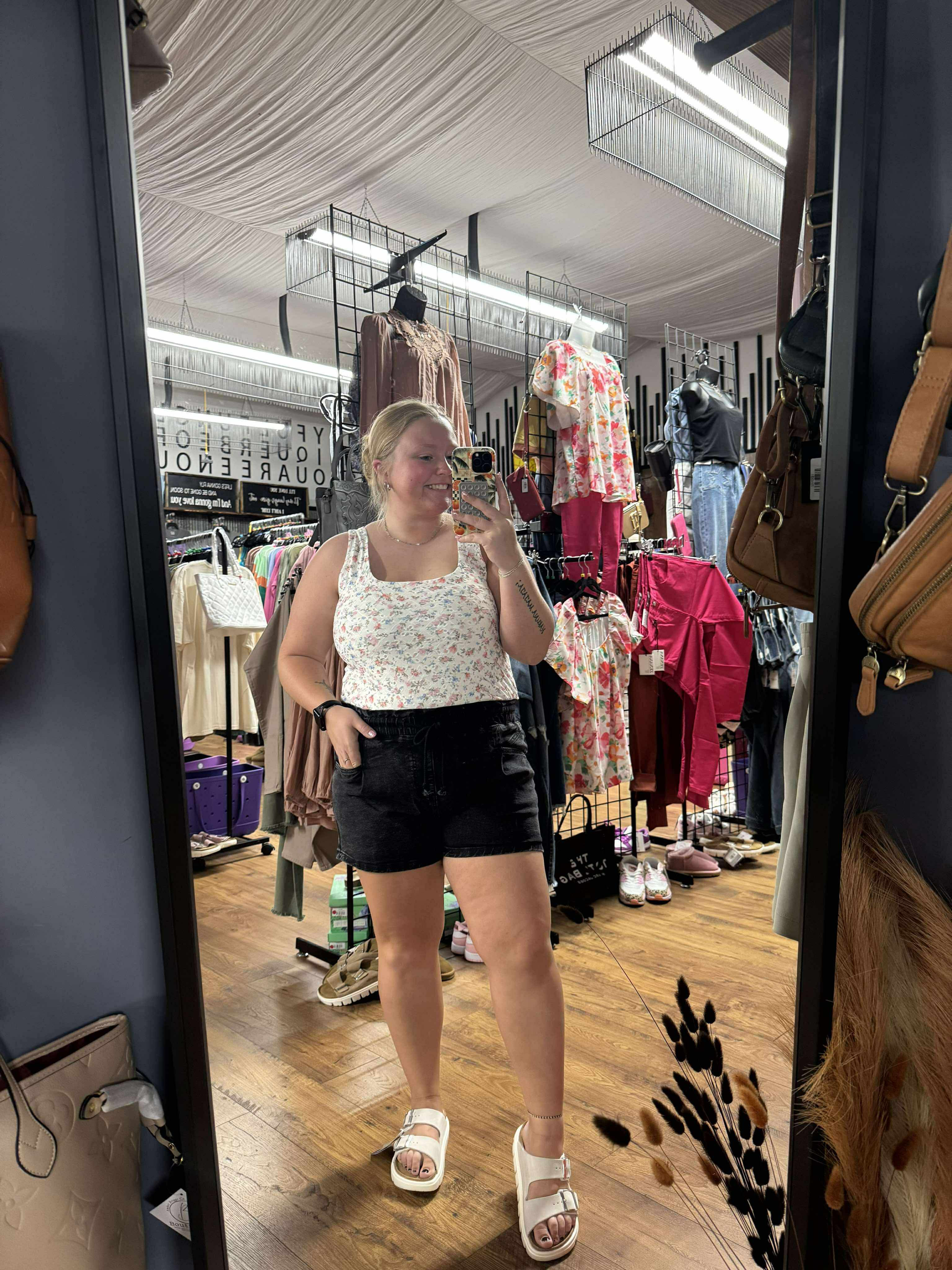 This sleeveless stunner features a square neckline and allover textured floral detailing for a feminine twist on a closet basic. The fitted bodice creates a flattering silhouette, while the snap closure keeps things sleek and smooth under jeans, skirts, or shorts.